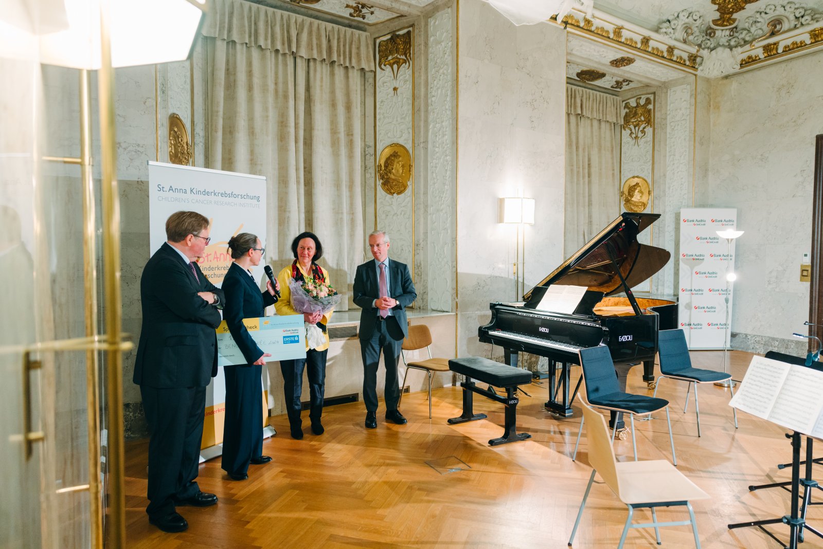 Auf einen musikalischen Hochgenuss können sich die Gäste der heurigen Benefizsoirée zugunsten der St. Anna Kinderkrebsforschung freuen. Im exklusiven Ambiente des Bank Austria Salons, im Alten Rathaus spielen am Montag, dem 9. Dezember 2024, um 19.00 Uhr Mitglieder der Wiener Philharmoniker – Lucas Stratmann, Adela Frasineanu, Benjamin Beck und Stefan Gartmayer -gemeinsam mit Pianistin Jasminka Stancul Kammermusik von Wolfgang Amadeus Mozart und Antonin Dvorák. Im Anschluss ist das Publikum noch zu einem Empfang geladen.