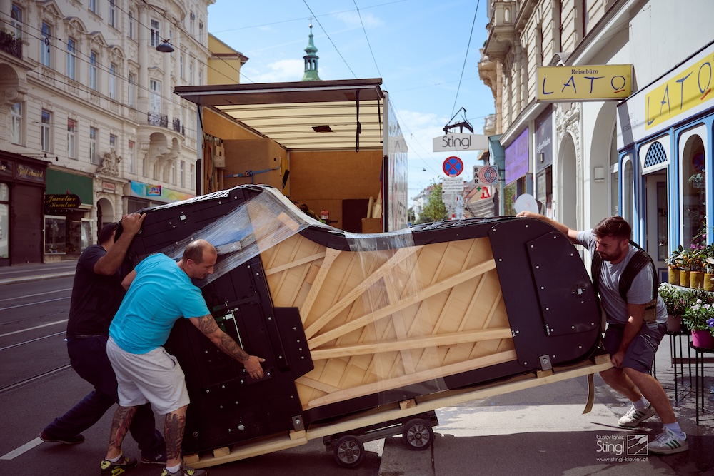 Für das Konzert "Frank Wildhorn - LIVE IN CONCERT" am 03.08.2025 im Theater im Park lieferten wir heute unseren neusten FAZIOLI F278 Konzertflügel an.