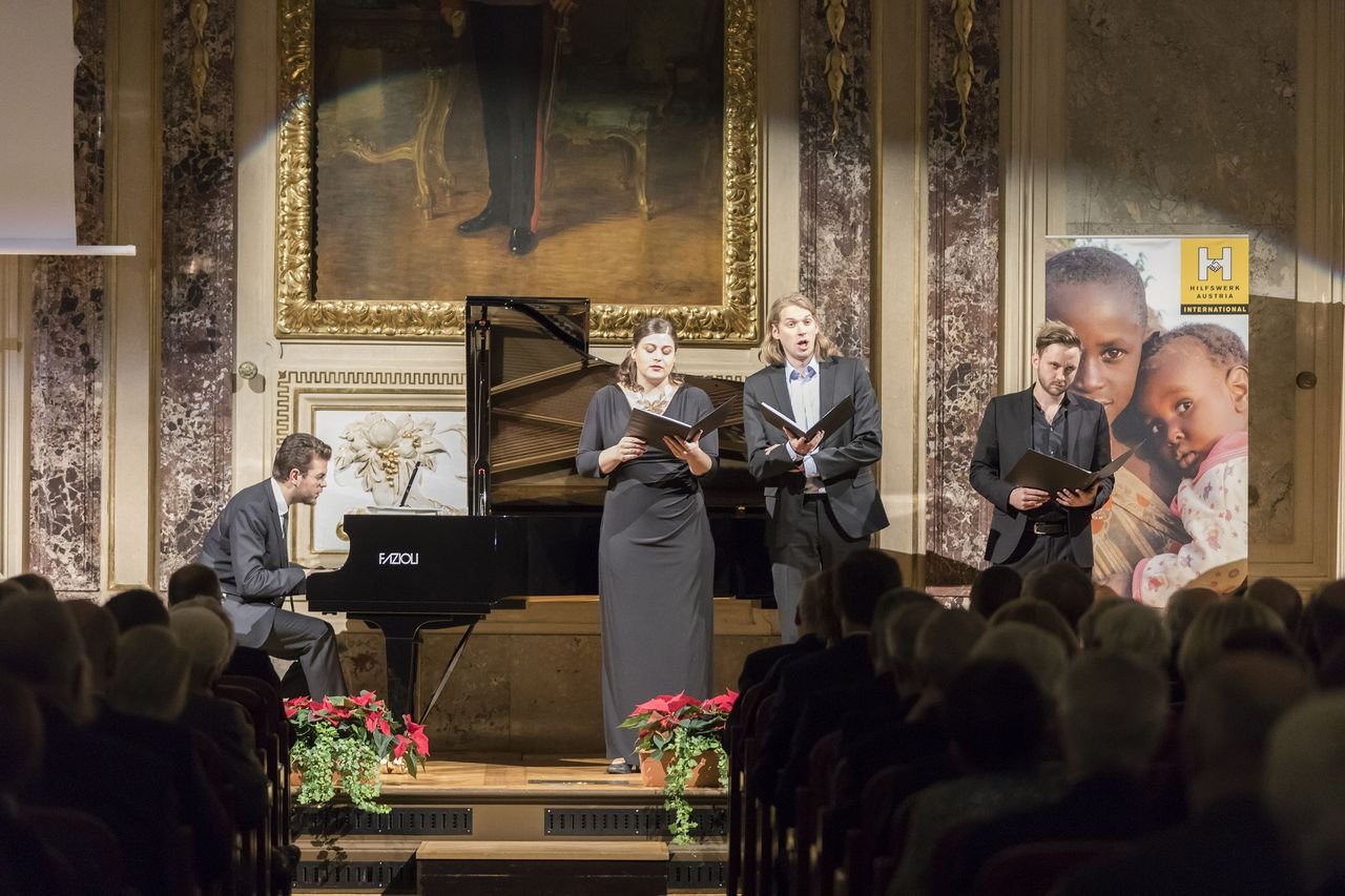 Den vorweihnachtlichen Abend gestaltete Rafael Fingerlos, Bariton und Ensemblemitglied der Wiener Staatsoper. Ihm zur Seite standen Magdalena Rüker und Martin Mairinger, ebenfalls zwei hochkarätige Sänger. Musikalisch wurde das Trio durch den international renommierten Pianisten und Dirigenten Marcus Merkel begleitet. Unter dem Motto „STILLE UND NACHT“ verzauberten sie das Publikum mit vorweihnachtlicher Musik von Johannes Brahms, Franz Schubert, Peter Cornelius, Franz Xaver Gruber u.a.